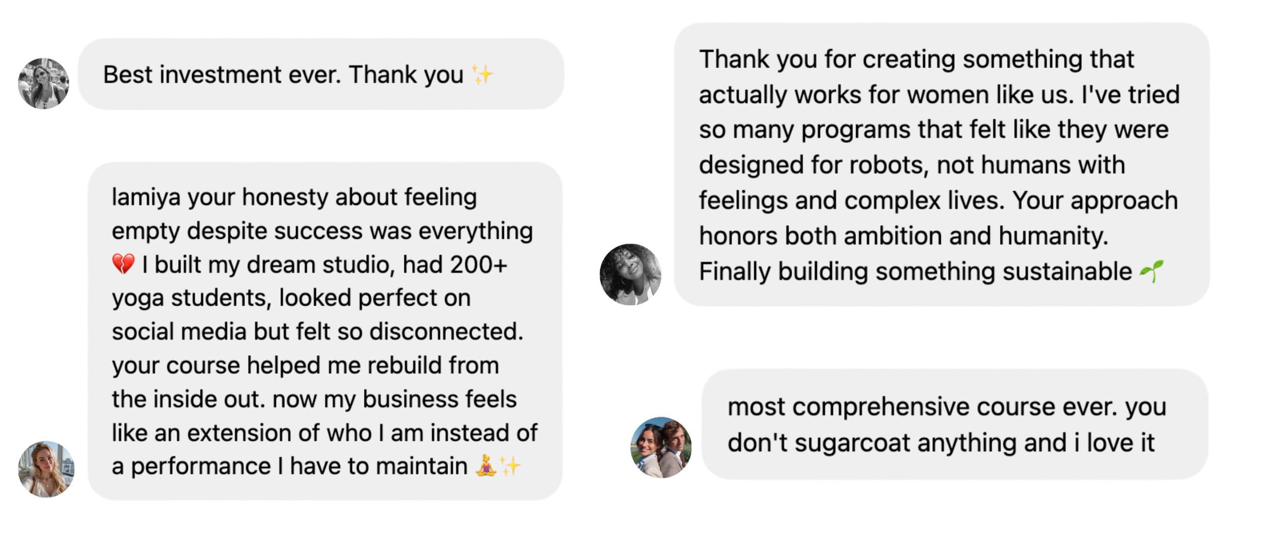 It's made FOR women, designed with your reality in mind: your cycles, your creativity, your vision, your resistance to the traditional 9-to-5 mold. It doesn't shame you for being sensitive. It shows you how to lead with it. If your goal is to have long lasting online career, you can't skip this. It's your armor!